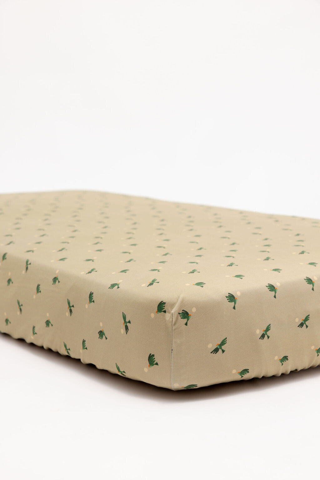 Soft sage green with scattered green hawks taking flight.