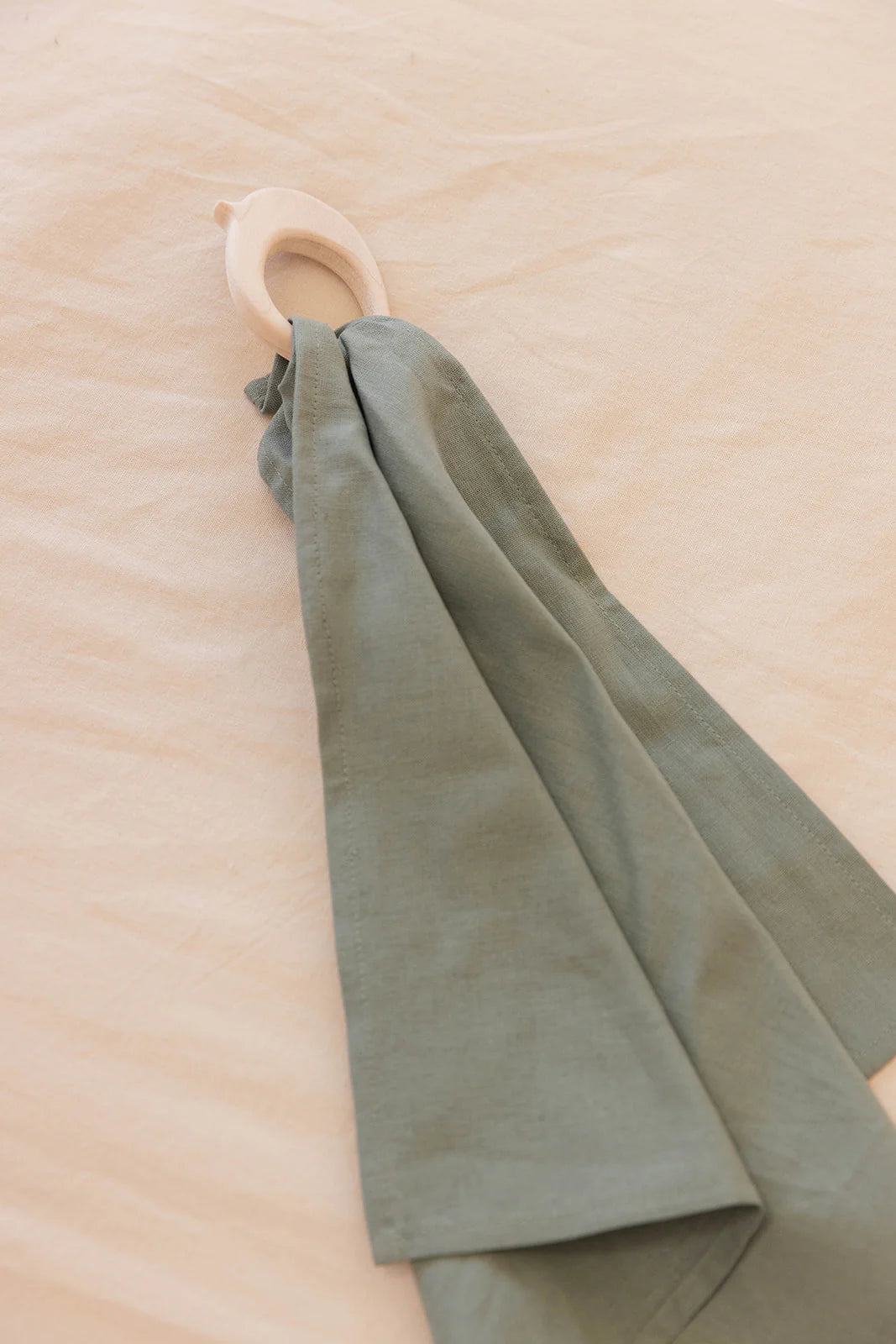 To complete the set. our Teether comes in the soothing shade of Acadian. A thoughtful gift that brings both style and serenity to any nursery. Gift box included!